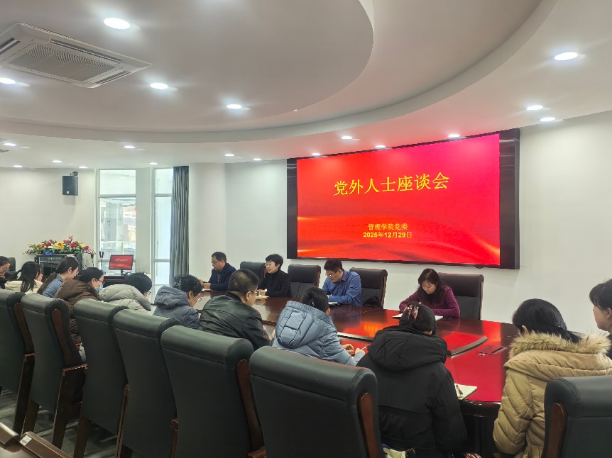 为深入学习贯彻新时代党的统一战线工作思想,广泛凝聚党外人士智慧力量,助推学院高质量发展,2025年12月19日,管理学院党委召开党外人士座谈会。学院党委委员、党外教师代表参会,会议由学院党委书记栾兰主持。